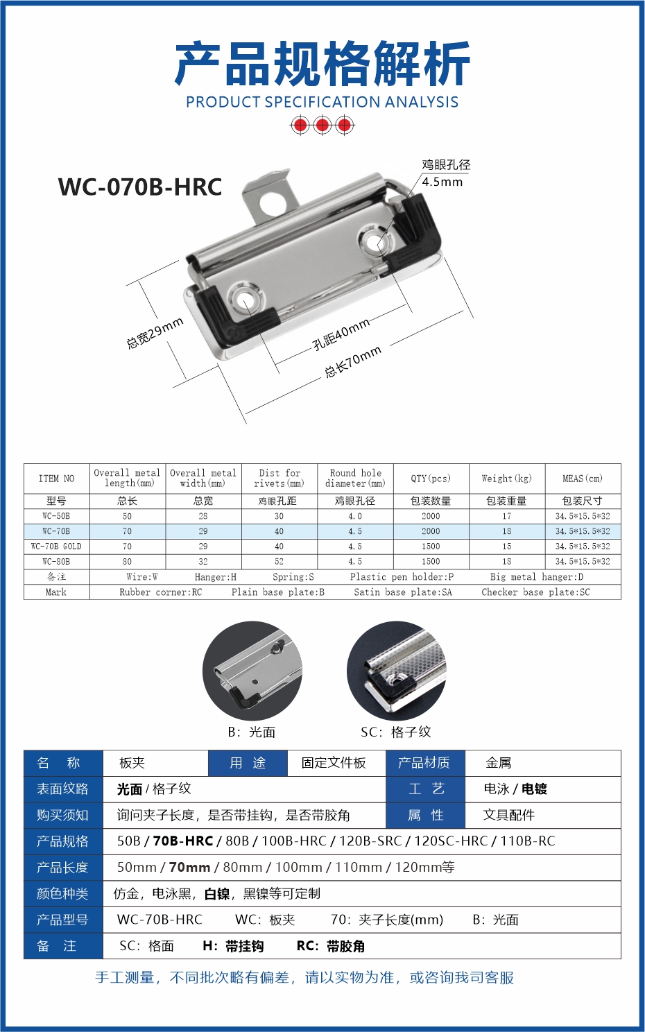 - Specifications:070B