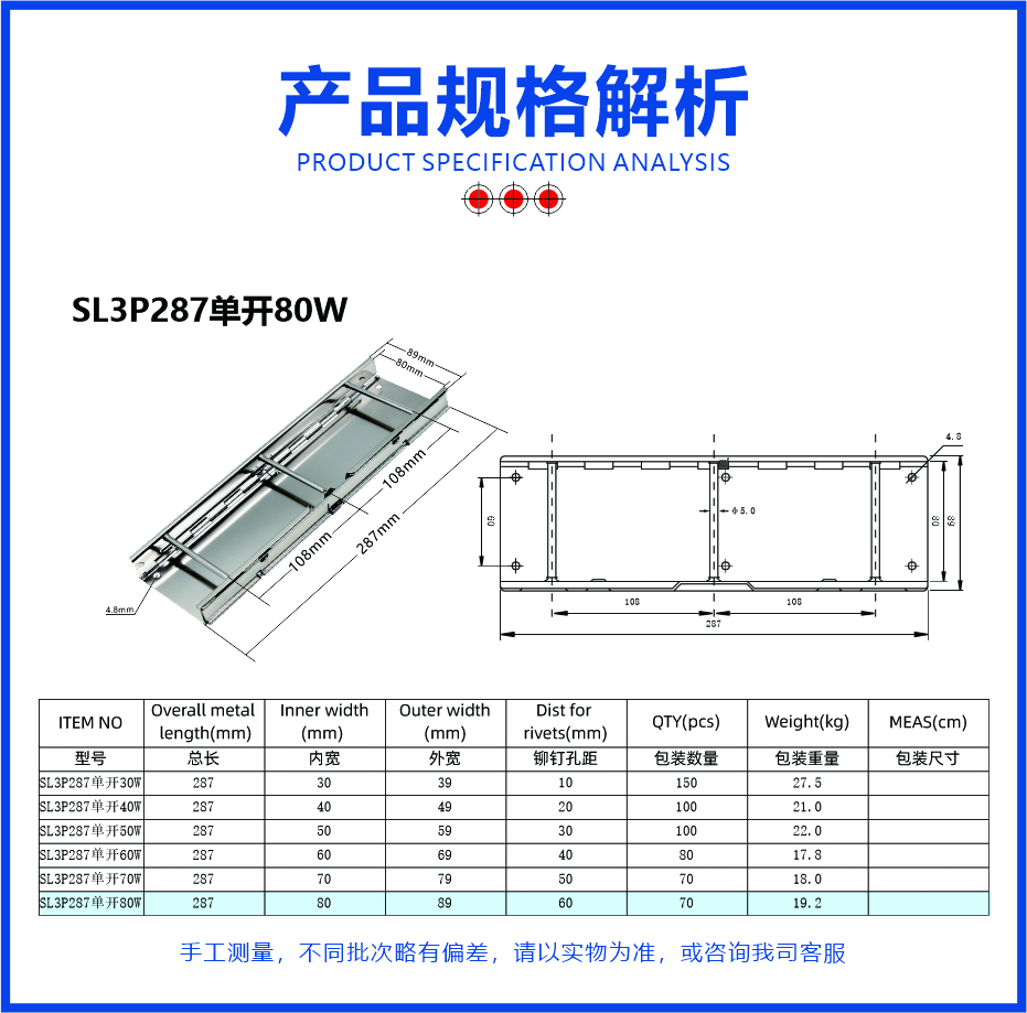 SL3P287Single opening80W