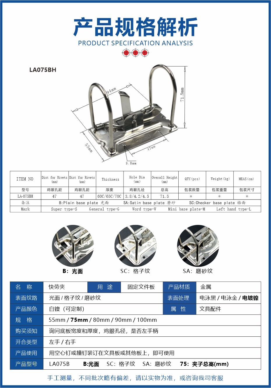 • Specifications:LA075BH